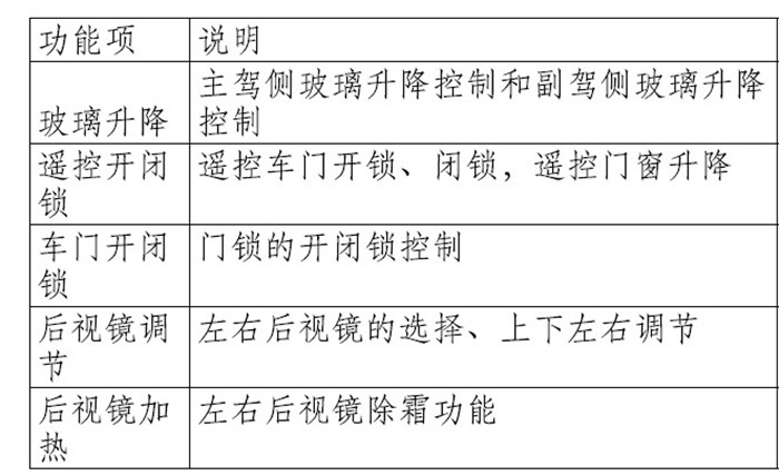 6钥匙ON档关闭后,90秒内玻璃升降功能及中控锁功能仍需有效;90秒后仅中控锁功能有效。(Z101)