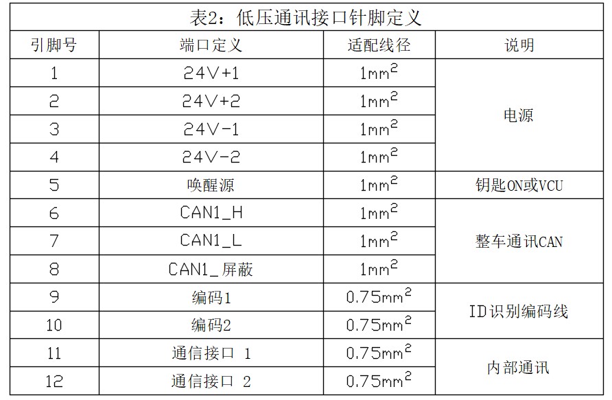4 高低压连接器型号定义见表1, 低压通讯接口针脚定义见表2, 高压输入接口针脚定义为: 1(A)+、2(B)-。