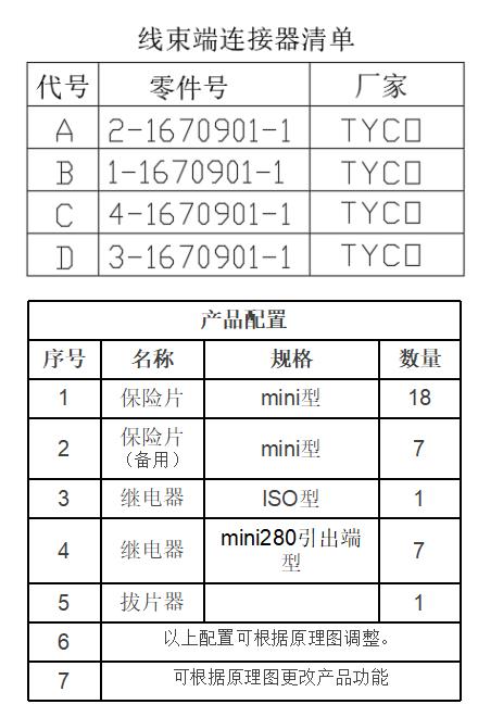 启动控制、喇叭控制、RKE控制、点烟器控制、雨刮控制、音响控制、显示屏控制、停车控制、工作灯控制、预热控制、空调控制、充电回路