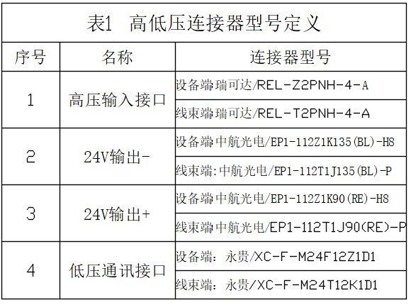 4 高低压连接器型号定义见表1, 低压通讯接口针脚定义见表2, 高压输入接口针脚定义为: 1(A)+、2(B)-。