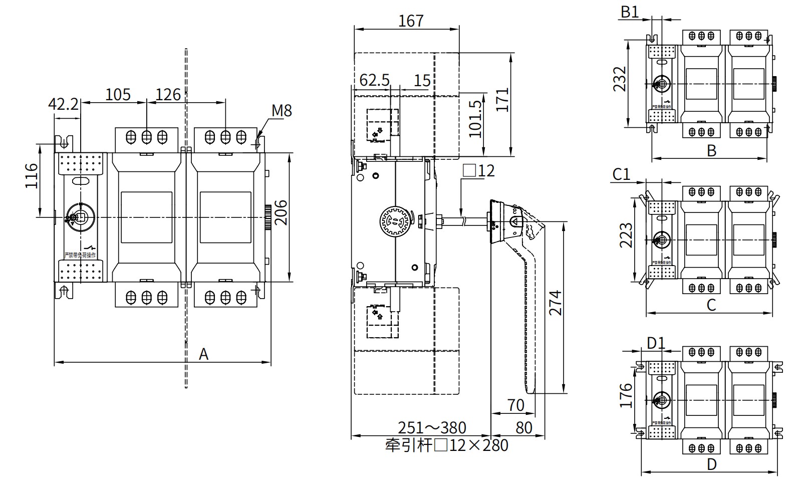 直流隔离器(以下简称开关)适用于直流DC 1500V及以下,额定工作电